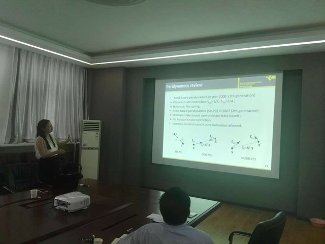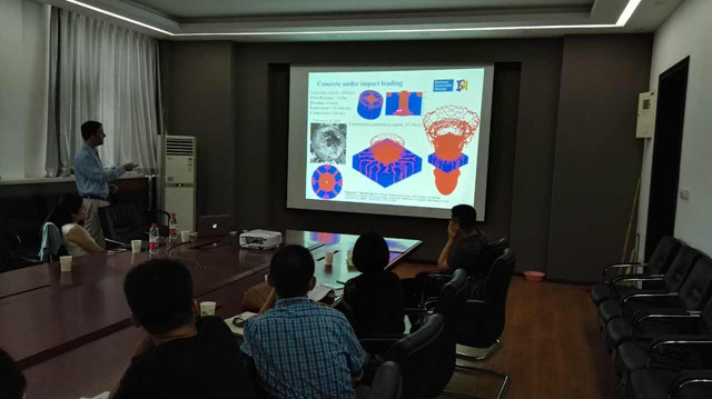 近日,應(yīng)北京理工大學(xué)爆炸科學(xué)與技術(shù)國(guó)家重點(diǎn)實(shí)驗(yàn)室的邀請(qǐng),德國(guó)魏瑪-包豪斯大學(xué)Timon Rabczuk 教授和萊布尼茨-漢諾威大學(xué)莊曉瑩教授到北理工進(jìn)行學(xué)術(shù)交流訪問(wèn),并分別做了題為“Computational Modeling of Dynamic Fracture”與“Dual-horizon peridynamics for fracture modelling, multi-materials and fluid structure interaction”的學(xué)術(shù)報(bào)告。爆炸科學(xué)與技術(shù)國(guó)家重點(diǎn)實(shí)驗(yàn)室王成主任、王仲琦副主任、吳艷青教授及部分師生聆聽了本次報(bào)告會(huì)。報(bào)告會(huì)由范吉堂副教授主持。