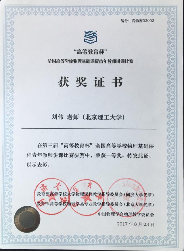 北理工教師喜獲全國物理青年教師講課比賽一等獎