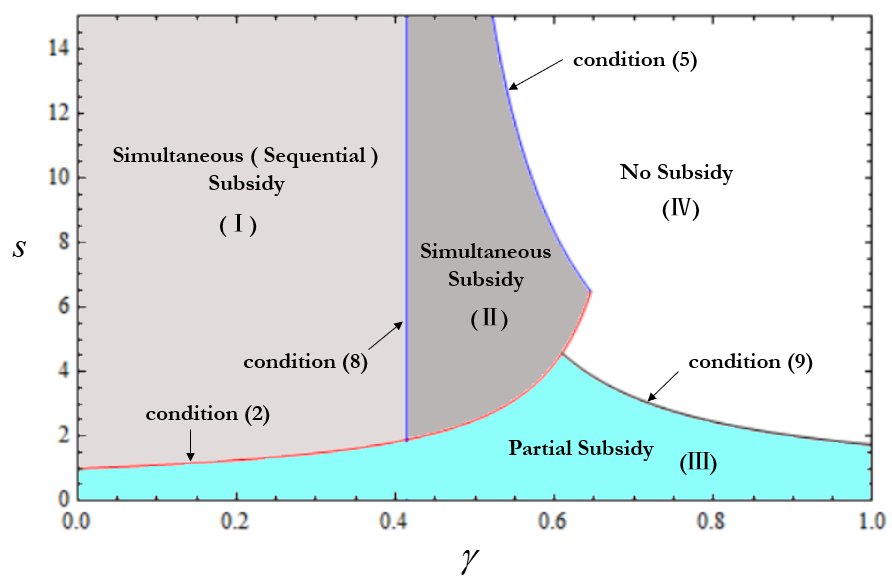 該成果開創性地研究了三種不同的補貼策略,并且結合了市場信息不對稱和下游競爭性零售商等因素,為現實中的上游制造商激勵下游零售商分享其私有信息,提供了切實可行的理論指導。文章指出,當獲取的信息精度和市場競爭強度都不高的時候,選擇同時補貼 (Simultaneous Subsidy) 或者順序補貼策略 (Sequential Subsidy) 是制造商的最優策略;否則,部分補貼策略 (Partial Subsidy)為制造商的最優策略。