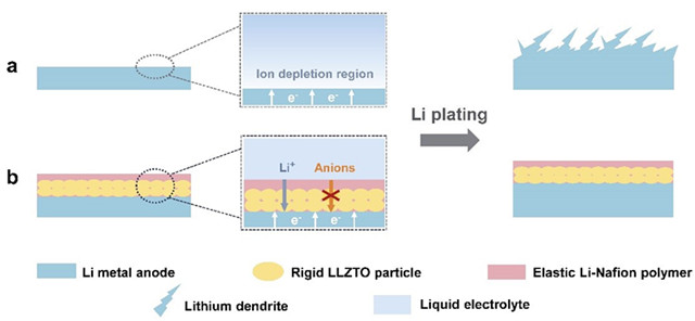 圖1 雙層單離子導(dǎo)體LLN保護(hù)層實(shí)現(xiàn)無(wú)枝晶均勻鋰沉積