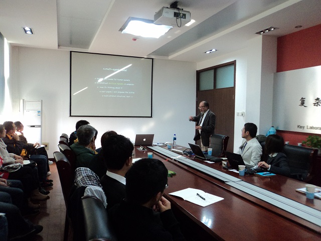 在北京理工大學國際交流合作處的大力支持下,應自動化學院戴亞平教授邀請,來自日本立命館大學政策科學學院的三上達也教授與上原拓郎博士到北京理工大學自動化學院“遠程控制教育與科學研究聯合實驗室”進行訪問,并于11月4日上午在6號教學樓3層會議室作了主題為“應用多元化代理模型進行社會仿真預測”以及“Ecological threshold and ecological economic threshold: Implications from an ecological economic model with adaptation”的學術報告。