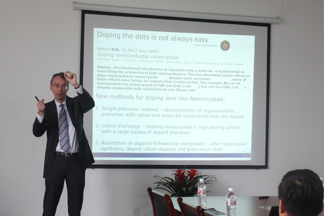 應材料學院和納米光子學與超精密光電北京市重點實驗室的邀請,荷蘭烏得勒支大學的Andries Meijerink教授于11月8日訪問了我校,并在材料學院會議室(5號教學樓 502)作了題為“Doping the dots”的學術報告。