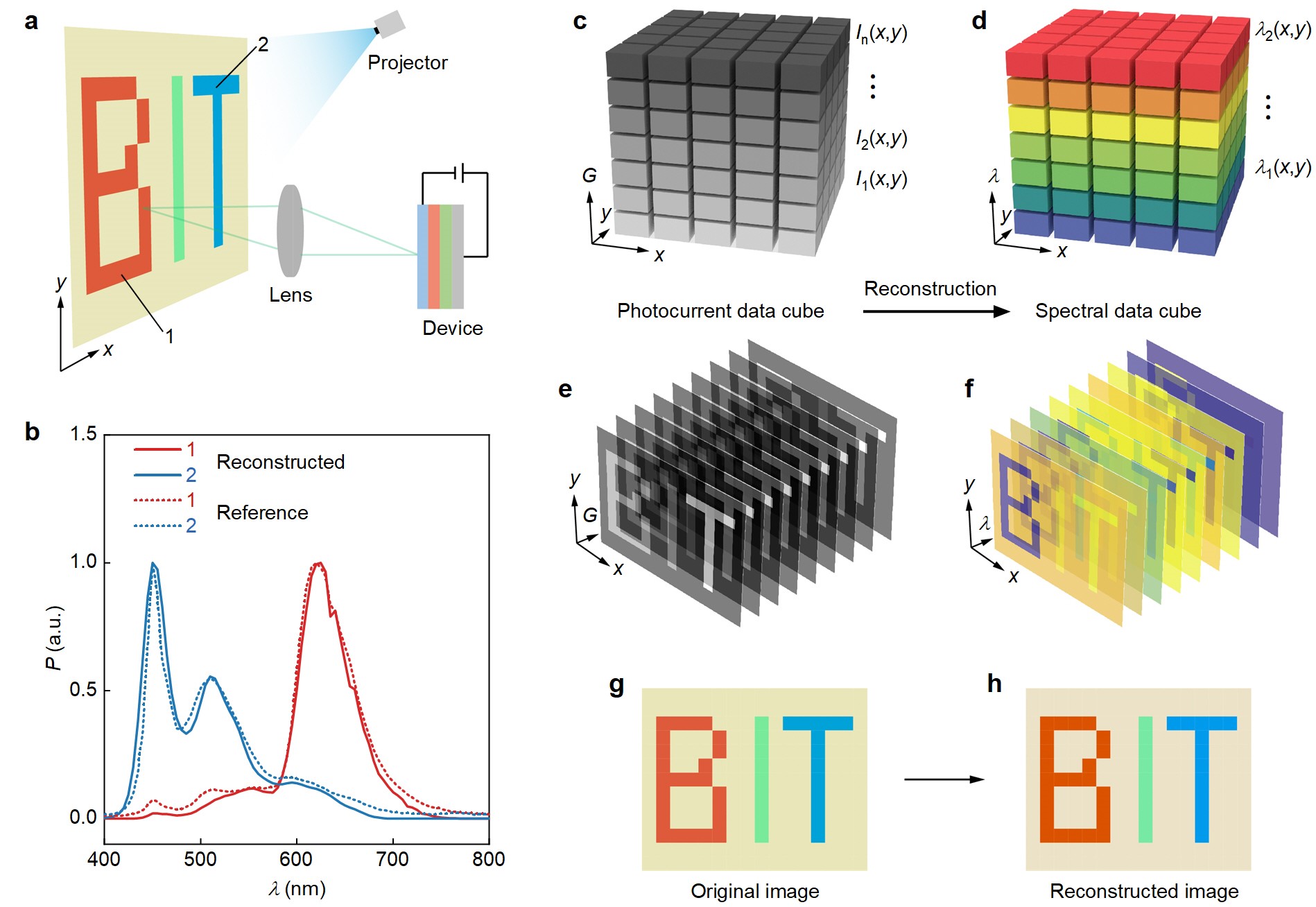 圖1. 范德華光譜儀的設計原理及光譜重構功能展示