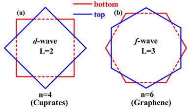 近日,北京理工大學物理學院楊帆教授課題組與合作者提出一種實現四倍電荷超導的新機制:即手征超導態的殘余相;而且提供了一種系統的材料實現方式,即通過轉角電子學的方式來實現該超導量子態。他們的工作利用新近興起的扭轉電子學,考慮雙層最大轉角材料(圖1,例如45度轉角的雙層銅基超導或30度轉角的雙層石墨烯)中的手征超導態。該超導態同時破缺了U(1)對稱性和時間反演對稱性。利用金茲堡朗道理論分析,結合重整化群理論以及蒙特卡洛數值計算,他們對該體系的系統深入研究表明在體系的手征超導態臨界溫度之上的一個溫度區間里可以形成時間反演對稱被恢復的四倍電荷超導態,從而為實現這種新穎的超導態提供一種全新的、容易被材料實現的機制。他們的研究還發現了另一種可能的殘余相:即手征金屬相,也是一種新穎的量子態。