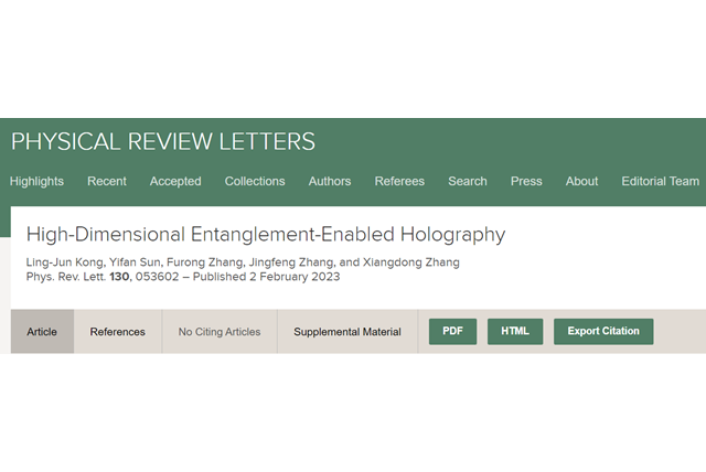 近日,北京理工大學物理學院張向東教授課題組基于高維軌道角動量糾纏態,實...