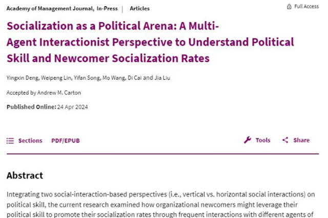 近日,管理學院組織與人力資源管理系鄧英欣老師與合作者在管理學國際頂級期...