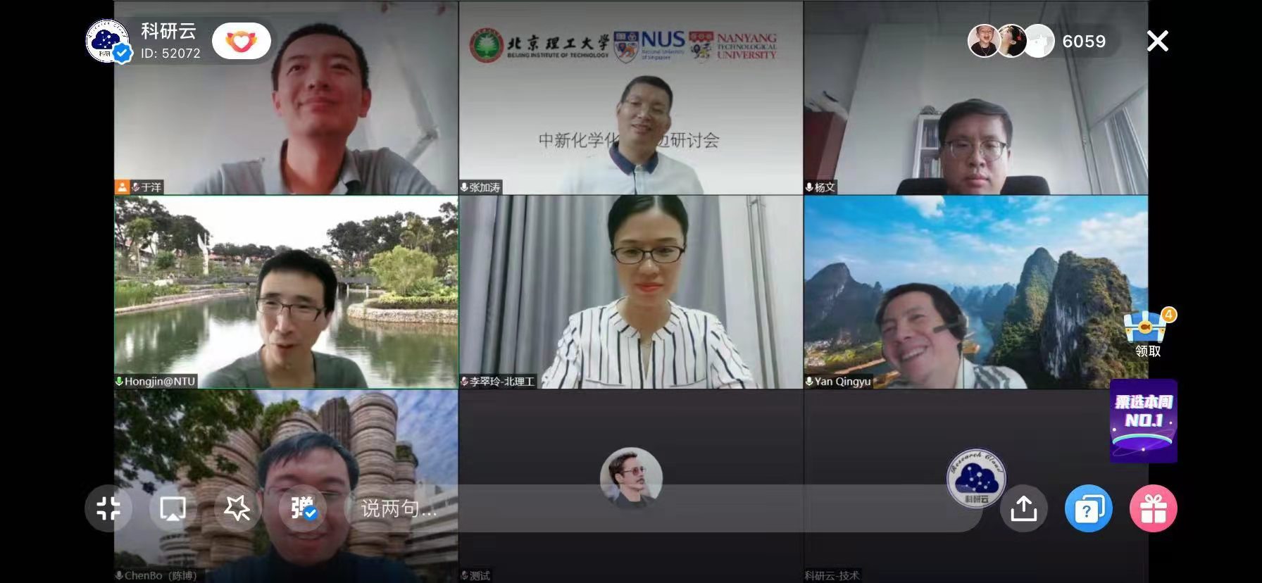 8月10日,由北京理工大學化學與化工學院主辦的中新雙邊化學化工研討會在線上舉行。來自新加坡國立大學、新加坡南洋理工大學、北京理工大學的8位專家做報告,化學與化工學院及相關院系的80余名師生參加了會議。學術報告環節通過科研云等直播平臺進行了直播,相關領域專業累計5.6萬余人在線參與。