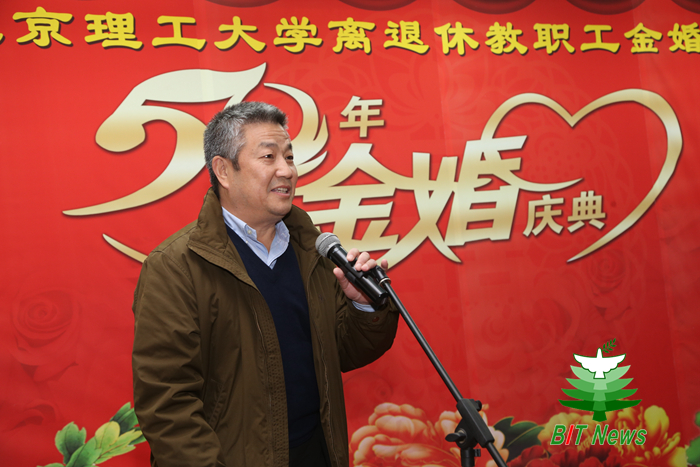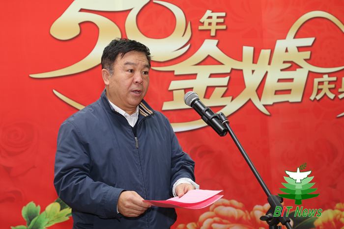 趙長祿致賀詞,代表學校黨政領導向全體金婚伉儷表示誠摯的祝賀!他指出,在座的金婚伉儷是北京理工大學的建設者和見證者,為學校快速、科學發展貢獻了畢生的心血和精力。飲水思源,學校高度重視并時時關注著離退休教職工的生活,努力營造和諧美好的校園氛圍。他強調,目前學校面臨深化綜合改革,加快推進雙一流建設的重大機遇,全校師生凝心聚力,向創建世界一流理工大學砥礪前行。同時,學校也在時時關注著離退休老同志,努力營造和諧美好的校園氛圍。他指出,五十年里金婚伉儷們互敬互愛、相扶相持,引領家庭和睦、代際和順、社會和諧的良好風尚,這是家庭的幸福和驕傲,更是和諧社會的福祉。他希望金婚伉儷們進一步繼續發揚老有所學、老有所為、老有所樂、奉獻正能量的時代精神,“展示陽光心態、體驗美好生活,暢談發展變化”,為構建美好、和諧的校園貢獻力量。