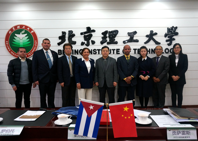12月14日上午,古巴哈瓦那大學副校長Hilda Leon一行訪問北京理工大學,北理工常務副校長楊賓在2號辦公樓會見了外賓。哈瓦那大學財務處處長Roberto Naveira Brito、古巴駐華使館教育專員Augusto Fajardo González以及北理工國際交流合作處處長唐水源、副處長高珊、項目專員彭姝、外語學院曾艷老師參加了會見。