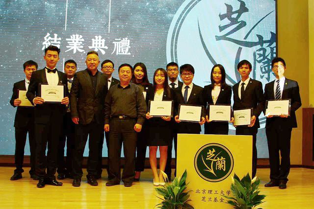 義拍環節在愉悅的氛圍中結束,競拍的來賓得到了心儀的拍品,同時為北京理工大學的教育公益事業奉獻了自己的愛心。活動最后一個環節是第一屆芝蘭成長計劃的結業典禮。楊賓、王雙上臺給2015級芝蘭學員頒發結業證書并合影留念,2017芝蘭慈善之夜落下帷幕。