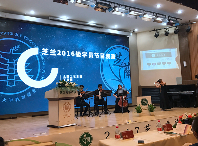 中場由2015級芝蘭學員代表蔣子杰分享了他的芝蘭經歷,演講娓娓道來,誠懇而動人;而2016級芝蘭學員的節目弦樂四重奏、新疆舞樂則令人驚艷,各位領導老師和來賓紛紛鼓掌喝彩。