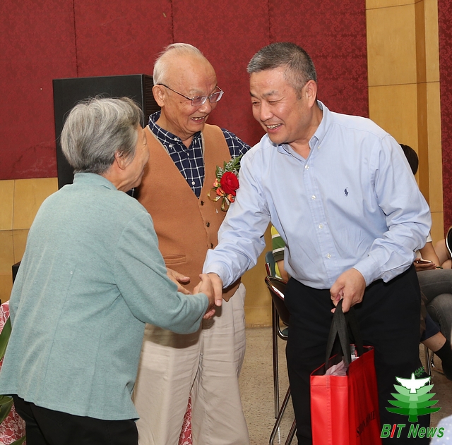 趙長祿為金婚伉儷代表贈送賀禮,并代表學校祝福金婚伉儷相親相愛、幸福永久、同德同心、幸福綿長。楊賓代表學校黨委和行政致金婚賀詞,向全體金婚伉儷表示誠摯的祝賀!他指出,在座的金婚伉儷是北京理工大學的建設者和見證者,為學校快速、科學發展貢獻了畢生的心血和精力。飲水思源,學校高度重視并時時關注著離退休教職工的生活,努力營造和諧美好的校園氛圍。他強調,學校已經正式進入國家世界一流大學和一流學科建設行列,這是學校發展建設歷程中繼進入國家“211工程”和“985工程”之后又一個重要的里程碑,全校師生凝心聚力,勇毅篤行,為走好北理工雙一流建設砥礪前行。他指出,五十年里金婚伉儷們互敬互愛、相濡以沫,既是家庭的幸福、也是學校的驕傲,更是社會的福祉。他希望伉儷們進一步繼續發揚老有所學、老有所為、老有所樂、弘揚正能量的時代精神,為構建美好、和諧的校園貢獻力量。