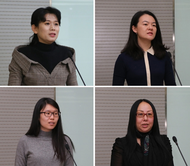 招生宣傳先進集體代表、材料學院黨委副書記、副院長張艦月,就業工作先進集體代表、宇航學院黨委副書記、副院長方蕾,招生宣傳貢獻獎代表、信息與電子學院哈楠,就業工作貢獻獎代表、光電學院周霞分別作了交流分享。
