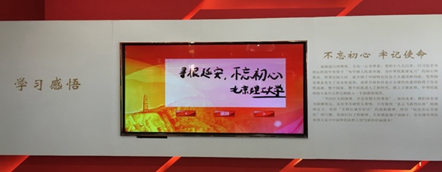 一幕幕歷史場(chǎng)景、一張張珍貴照片、一件件歷史文物生動(dòng)再現(xiàn)了毛澤東同志等老一輩無(wú)產(chǎn)階級(jí)革命家在延安時(shí)期創(chuàng)造的光輝偉績(jī),生動(dòng)展示了黨中央在延安和陜甘寧邊區(qū)領(lǐng)導(dǎo)中國(guó)革命的偉大實(shí)踐。延安這片沃土承載著革命的歲月,孕育了北理工的紅色基因,也鑄就了北理工人的初心。