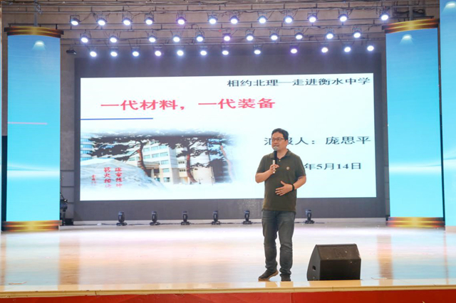 北理工材料學院院長龐思平為衡水中學學子作《一代材料,一代裝備》專題報告,展現了北理工的軍工特色和材料學科對國防事業的發展作出的重大貢獻,引起了十數次的熱烈掌聲,激發了學子們強烈的家國情懷和報國熱情。