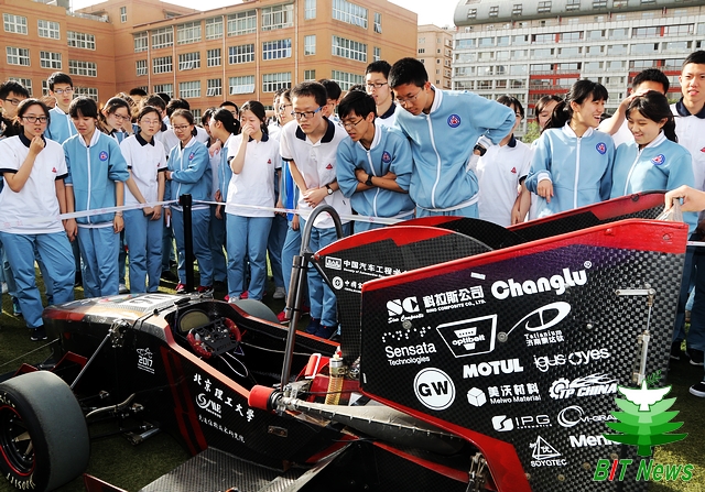 講座結束后,北京八中師生參觀了我校帶來的大學生方程式賽車隊、大學生節能車隊、地面機器人、陸空兩棲無人機、管道探測智能車和大學生“飛鷹”無人機隊等大學生科技創新成果展示,燃起了在場中學生熱烈的科創熱情。