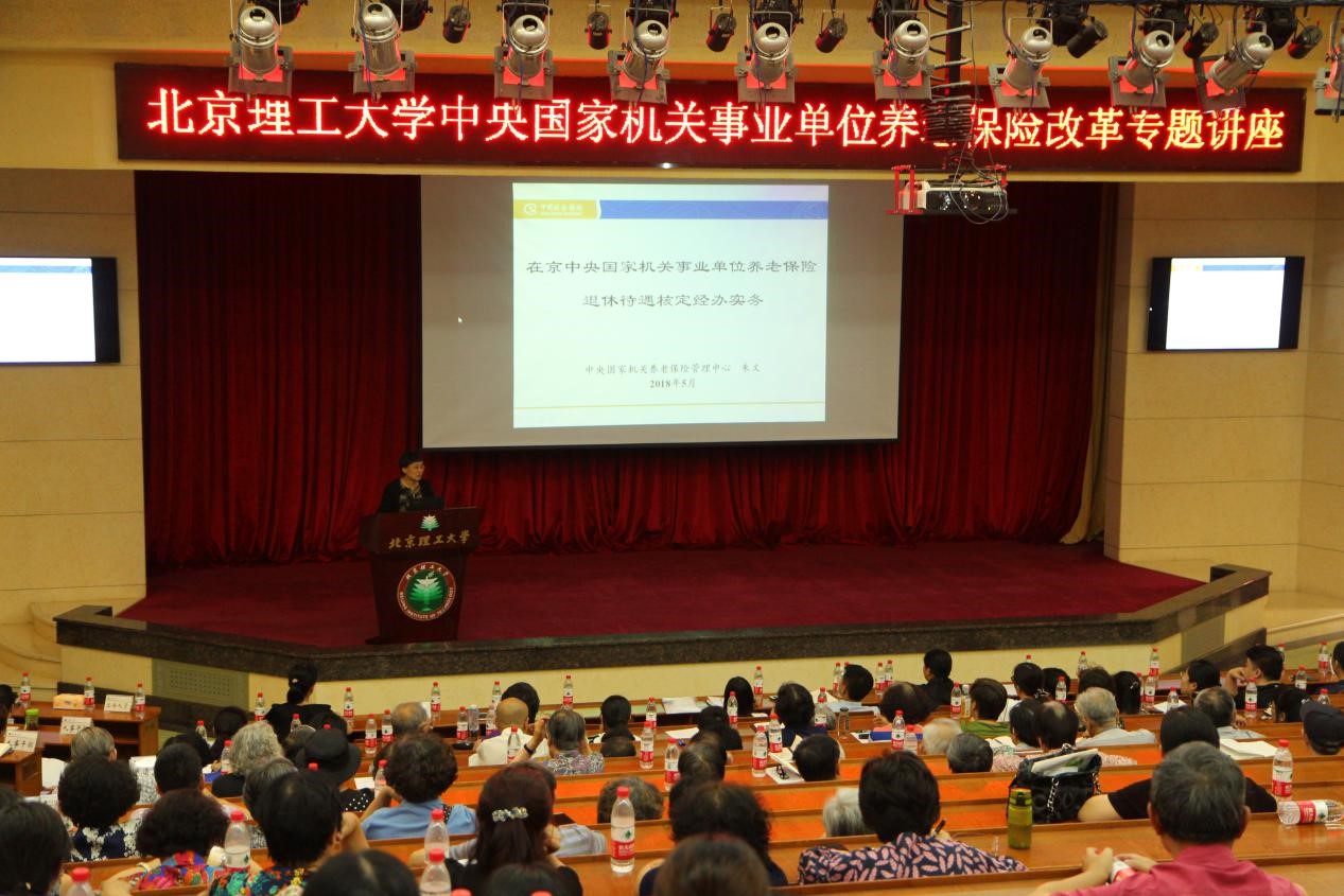 中央國家機關養老保險管理中心于2018年6月全面啟動我校在職教職工保費征繳和退休教職工待遇發放工作,為了讓廣大教職工更清晰地了解中央國家機關事業單位養老保險改革相關政策,保證改革工作平穩過渡,我校邀請中央國家機關養老保險管理中心待遇核定處處長朱文于6月4日下午兩點在中心教學樓報告廳開展北京理工大學中央國家機關事業單位養老保險改革專題講座。