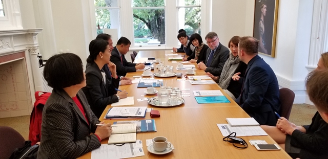 5月21日上午,王曉鋒率團訪問了新西蘭奧克蘭大學,與奧克蘭大學負責戰略合作事務的副校長Jennifer Dixon教授會談,雙方就兩校全面合作及具體項目進行了廣泛深入的討論。雙方商定,在今年10月Jennifer Dixon來北京參加校慶活動期間,簽署學生訪學協議,續簽兩校合作框架協議。與會人員對兩校合作充滿期待。奧克蘭大學理學院院長John Hosking教授、副院長Sebastian Link教授、國際處處長Miranda Herbert女士等參加會談。