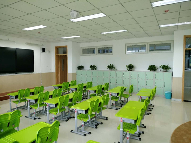 教室內先進的電子黑板一派現代化氣息,整齊的綠色桌椅朝氣蓬勃,音樂教室,科學教室……,這一幕幕場景是新學期正式開學的北京理工大學附屬實驗學校的教學樓。