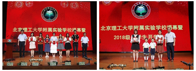 2018年9月3日上午,北京理工大學附屬實驗學校揭幕暨2018級小學生開學典禮在北京理工大學良鄉校區北區音樂廳舉行。北京理工大學副校長李和章,房山區人民政府副區長廖春迎,房山區教委主任顧成強,房山區良鄉高教園區管委會常務副主任路鵬,房山區委教工委副書記楊鳳娟,房山區教委副主任劉立欽、教委副主任武玉章、教委副主任郭冬紅,北京第一實驗小學房山分校(良鄉第四小學)校長李紅蓮,房山區教委中教科、小教科、發展規劃科和學校黨委宣傳部、學生工作部、教務部、良鄉校區管理處、校團委、精工書院、睿信書院、明德書院和出版社等相關單位負責人,以及附屬實驗學校全體教職工、大學生輔導員團隊,全體一年級新生和家長參加了典禮。