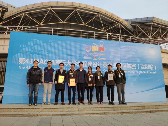 本次沈陽站的比賽由東北大學承辦,吸引了來自北京大學、復旦大學、浙江大學、北京航空航天大學等全國頂尖高校的180余支隊伍參加。我校ACM俱樂部派出的“明明是我們先AC的”隊發揮穩定,比賽中一直處于領先地位,最終不負眾望,以解出四道賽題的成績在全部參賽隊伍中脫穎而出,奪得金牌。ACM俱樂部派出的另兩支隊伍“肥宅大哭.jpg”隊和“請不要隨地吐痰”隊穩扎穩打,分別奪得一枚銀牌和一枚銅牌。