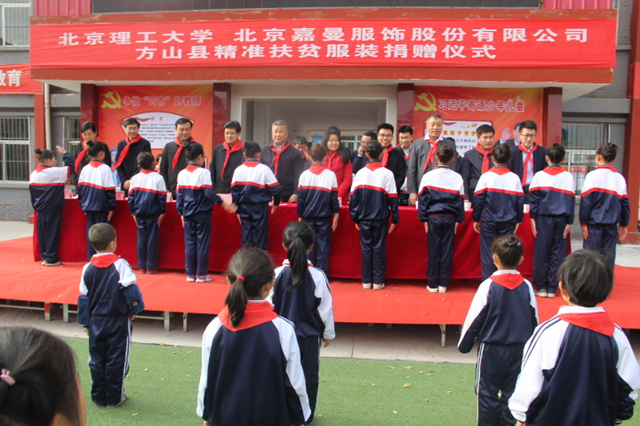 在方山縣第三小學(xué),工作組代表學(xué)校與國(guó)內(nèi)知名童裝品牌“嘉曼服飾”共同向方山縣小學(xué)生捐贈(zèng)1032套冬裝,價(jià)值61萬余元。此外,在學(xué)校教育基金會(huì)工作辦公室的推動(dòng)下,現(xiàn)已初步促成“嘉曼服飾”以加工訂單形式支持“扶貧車間”建設(shè)。