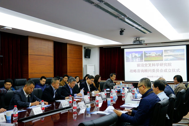 2018年11月14日上午,前沿交叉科學研究院戰略咨詢顧問委員會成立儀式暨委員會第一次會議在2號樓211會議室舉行。戰略咨詢顧問委員會由諾貝爾獎獲得者、院士等10名世界頂尖戰略科學家組成。中國科學院院士王恩哥、涂永強、徐宗本、周琪,英國皇家學會院士、歐洲科學院院士樊文飛,校黨委書記趙長祿,校長、中國工程院院士張軍,常務副校長、中國科學院院士梅宏出席了會議,相關職能部門和前沿交叉院負責人以及前沿交叉院教師參加了會議。會議由梅宏主持。