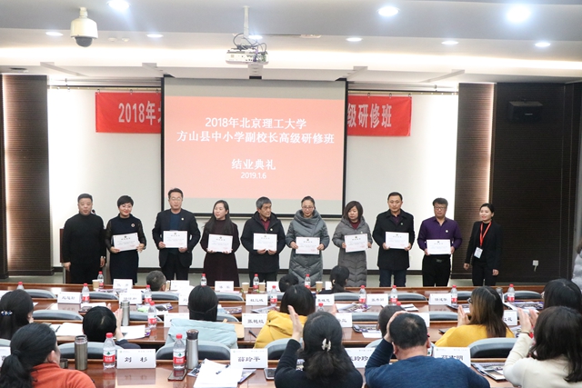 2019年1月6日,北理工教師發(fā)展中心組織“方山縣中小學(xué)副校長高級研修班”結(jié)業(yè)儀式。44名學(xué)員、理工附中黨委副書記潘軍、理工附小直屬黨支部書記饒曉煒、幼兒園園長沈紅、教師發(fā)展中心副主任侯愛軍出席儀式。教師發(fā)展中心副主任仇芳主持儀式。