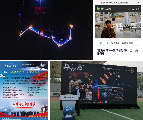 宇航學(xué)院依托學(xué)科特色,舉辦“仰望星空”主題活動,開展航天主題網(wǎng)絡(luò)文化作品大賽,引導(dǎo)青年學(xué)生學(xué)習(xí)踐行航天精神,激發(fā)航天報國情懷。舉辦“航天嘉年華”活動,用點亮“北斗七星”的方式喜迎航天日,象征北理工參與研制的北斗導(dǎo)航衛(wèi)星系統(tǒng),也寓意新中國成立70周年與中國航天發(fā)展的70年,每塊展板都詳述了北理工在“拓天”事業(yè)中取得的重要成就,共500余名師生參與了現(xiàn)場科技游戲體驗。舉行航天主題座談會,激勵學(xué)生在航天強(qiáng)國的征程中書寫青春奮斗故事,彰顯時代擔(dān)當(dāng)。