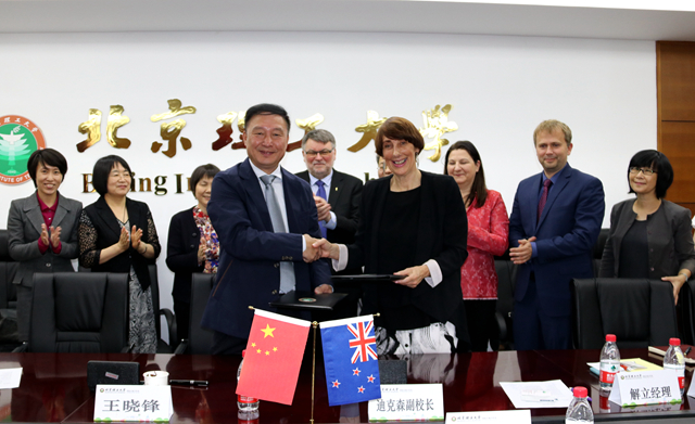 王曉鋒和Dixon分別代表北理工和奧克蘭大學(xué)續(xù)簽校際合作協(xié)議。