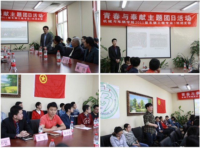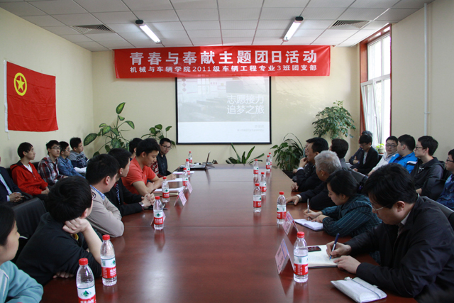 2014年3月,校團委啟動了“奮斗的青春最美麗”主題團日活動,廣大團支部積極策劃和組織實施,在活動中傳播正能量,大力弘揚社會主義核心價值觀。2011級車輛工程專業3班團支部策劃了“青春與奉獻”主題團日活動,邀請優秀的學長與支部成員共同分享如何在大學中綻放青春、如何在奉獻中服務社會。