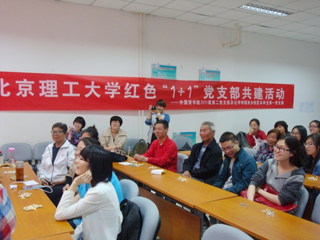在紀念“五四運動”九十五周年到來之際,以深入基層,了解社會為目標,北京理工大學外國語學院本科生第二黨支部聯合化學學院良鄉校區本科生第一黨支部與良鄉蘇莊二里社區黨支部開展了紅色“1+1”黨支部共建活動。經過了多次溝通和充分的準備后,5月9日,在母親節即將到來之際,同學們前往蘇莊二里社區與老人們進行了近距離的交流,獻上大學生對老人們良好的祝愿,拉開了紅色“1+1”黨支部共建活動的序幕。