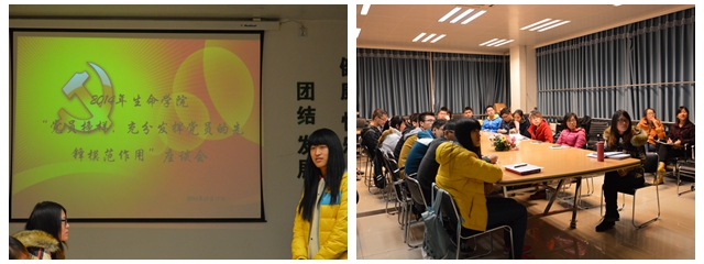 2014年11月17日晚7點,生命學院共學會在5號樓712會議室舉辦2014生命學院“黨員榜樣 充分發揮黨員先鋒模范作用”座談會。此次活動旨在激勵各入黨積極分子向優秀黨員學習,樹立榜樣,并在生活中起到先鋒模范作用。生命學院11級優秀本科生黨員張行健、董一名應邀出席此次座談會。座談會由生命學院輔導員李恒月主持。