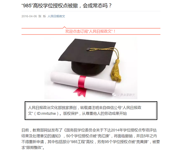【學習園地】“985”高校學位授權點被撤,會成常態嗎?