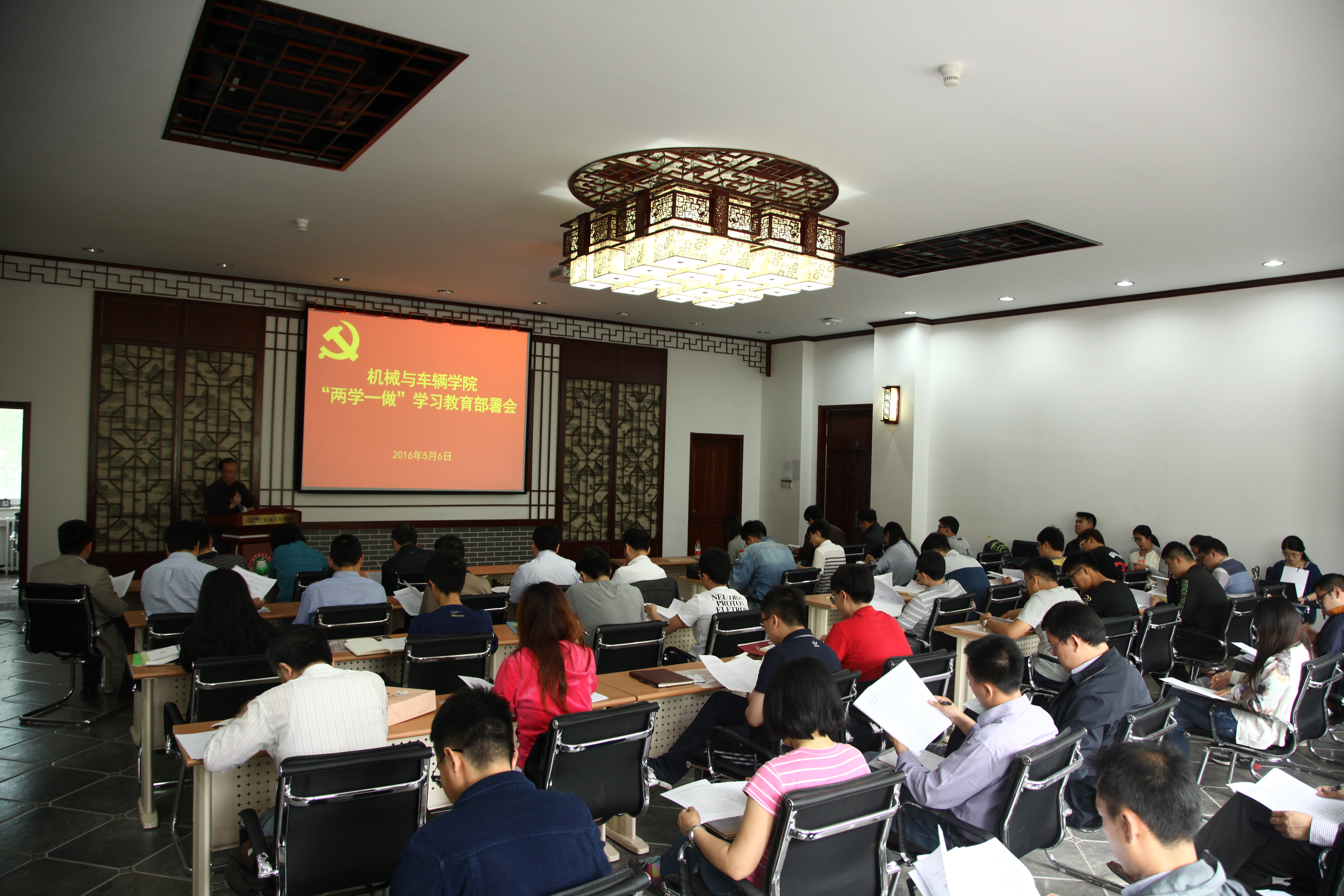 5月6日下午,機械與車輛學院“兩學一做”學習教育工作布置會在車輛重點實驗室報告廳召開。學校“兩學一做”學習教育協調小組成員、校紀委監察室副主任孫萍,學院領導班子全體成員、學院黨委委員、教工黨總支書記、支部書記,學生黨支部書記60余人參加了會議。會議由學院黨委書記左正興主持。