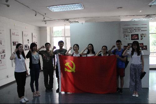 最后,機關黨支部書記楊慧磊帶領新加入黨組織的教工及學生黨員在鮮紅的黨旗下重溫了入黨誓詞。