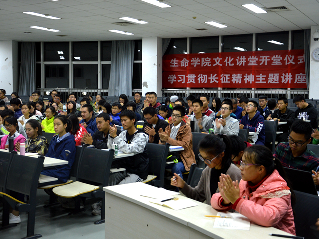 2016年10月26日,生命學院文化講堂開堂儀式暨紀念紅軍長征勝利80周年講座在19:00在良鄉1-103圓滿舉行,出席本次儀式的由生命學院黨委書記劉存福老師、生命學院輔導員秦奎偉老師、生命學院2015及2016級本科生。文化講堂是生命學院為了拓展學生知識視野、培養學生興趣愛好、強化學生專業技能、堅定學生理想信念而開設的綜合性課堂。
