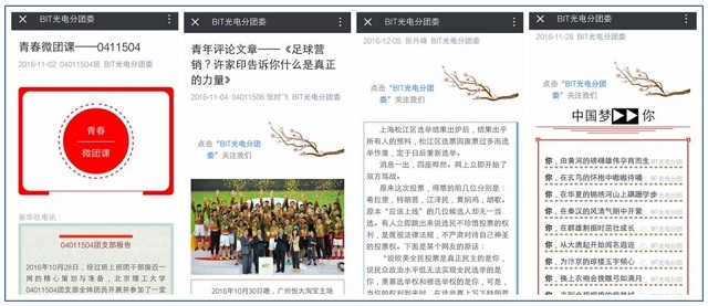 本次活動各團支部集思廣益,形式多樣。有的支部集中學習習近平總書記系列重要講話、學習長征精神、討論社會主義核心價值觀;有的支部參觀博物館、祭掃烈士陵園、分享長征故事、觀看紅色電影等;有的支部創新形式和內容,如04011608支部在烈士墓前開展“青年話理想”,04011506支部提出“飲水思源,礪已為源”,04241401、04241402支部將長征精神具化成青年責任,開展“理想征集”,04011606支部提出“美化校園從我做起”,組織團員美化校園。為了更進一步擴大團日活動的影響力,各支部發起“網絡討論”、“線上分享”等等,不僅通過討論、投票、轉載等豐富活動內容,還積極撰寫個人心得、活動評價。配合團日活動開展,各支部積極制作青春微團課10部,其中2部獲得校級優秀網絡青春微團課,撰寫青年評論文章41篇,創作網絡文化作品22件。