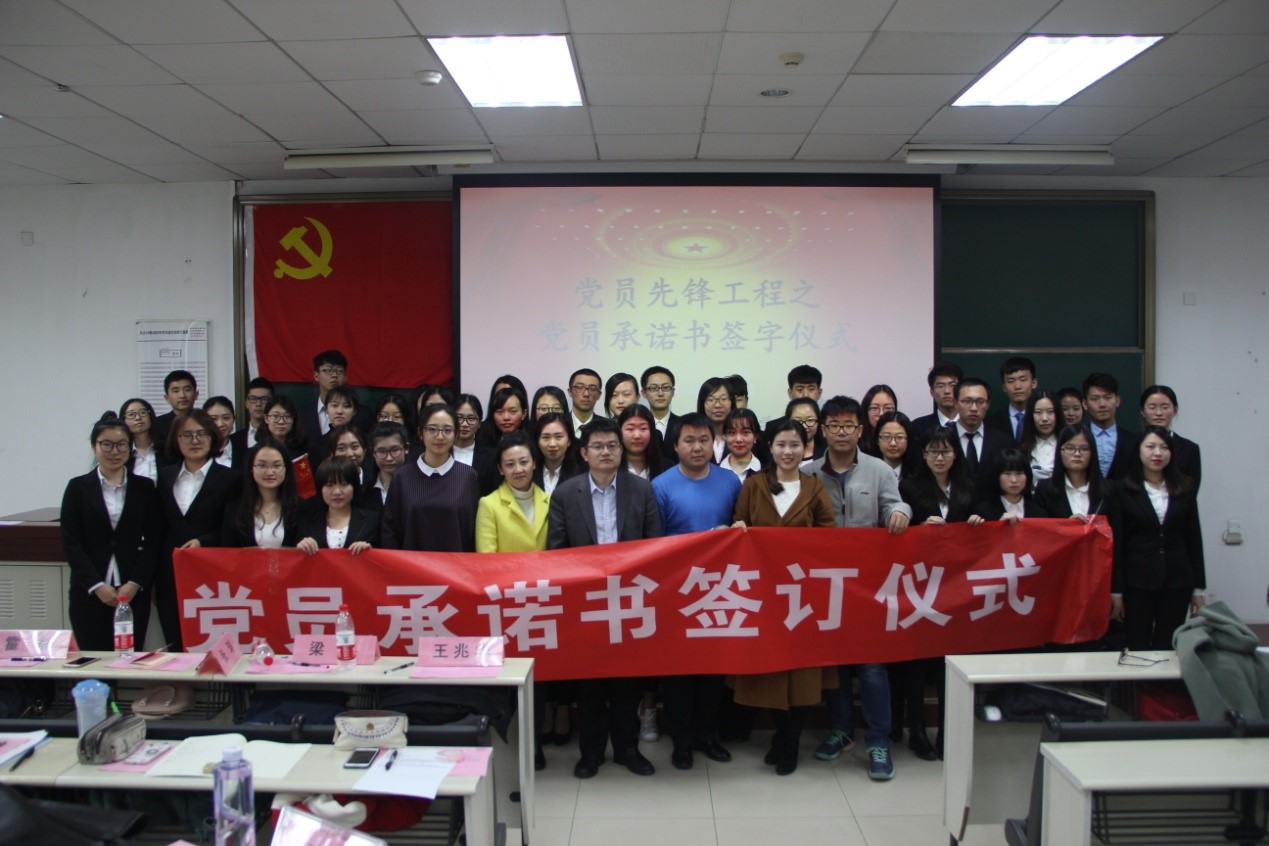 2017年3月19日下午,北理工管理與經濟學院2017年黨員先鋒工程之黨員承諾書簽字儀式在良鄉校區綜合教學樓A-206順利召開。管理與經濟學院黨委書記王兆華、團委書記張瑞、研工委書記梁昊、黨務干事霍晶、2014級輔導員賈一寧和2016級輔導員莊杰出席大會。管理與經濟學院全體本科生黨員、預備黨員及入黨積極分子參加大會。
