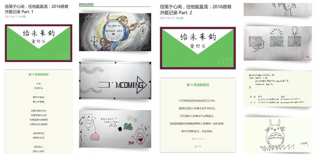 “明天,什么樣;四年后,什么樣;我無從知曉。須臾里我凝神信箋,細思心間。罅隙后我起筆撰畫,字里行間。”在“認識未知的自我”的基礎之上,每名同學都積極思考,動筆寫下了給四年后的自己的一封信。加上精心裝飾的信封,他們將對未來的憧憬與向往,化作信封上多彩的圖案和信件上躍動的文字。 “加油吧,22歲的你既沒有18歲的你的稚嫩,也同樣朝氣蓬勃,整個世界都在為你敞開大門,加油吧,世界是你的。 Opportunities await, adventures await.”07011603班的唐譽銘這樣寫道。4年后,再來到“未來驛站”,從信箱中取出信封時,看看那時的誓言是否已經實現,你是否初心未變。