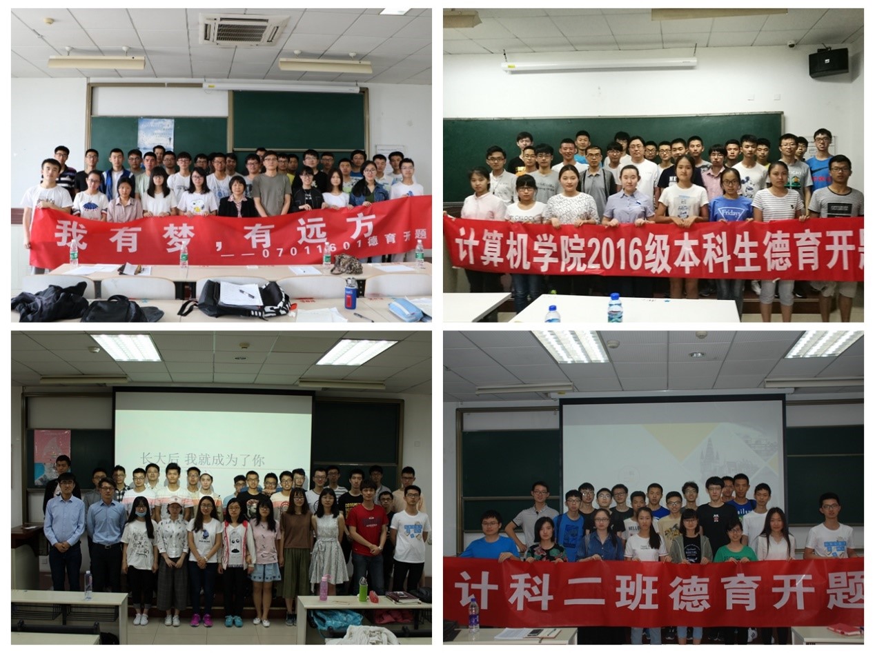 5月,德育開題的籌備階段,學院新增了開題報告評閱環節,學院黨政領導和班主任分別對自己聯系班級學生的德育開題報告進行了審核和一對一的指導。在經過前期的精心準備之后,計算機學院2016級8個班級陸續開展了德育開題主題班會。聯系班級的校領導、部處領導、學院領導、班主任和輔導員參與其中。 為做好德育開題工作,各班班委積極準備,表現出了班級特色。有的班級通過自制視頻的形式,回顧大一時光,凝聚同學情;有的班級制作主題海報,“我有夢,有遠方”、“長大后成為你”、“博觀約取,厚積薄發”、“打造青春夢想,把握明天希望”、“我對未來有話說”等班級主題表現了同學們對于未來的思索;有的班級設置節目環節為同學們提供展示自我的平臺。 同學們在班會上積極展示自己,吐露心聲。有的同學回顧自己的大一生活,反思自己存在的不足;有的同學說出了自己的夢想,為夢想奮斗;有的同學制定了自己的職業規劃,踏實的前行;有的同學著眼于當下,勤于讀書,加強鍛煉,打造更好的自己。