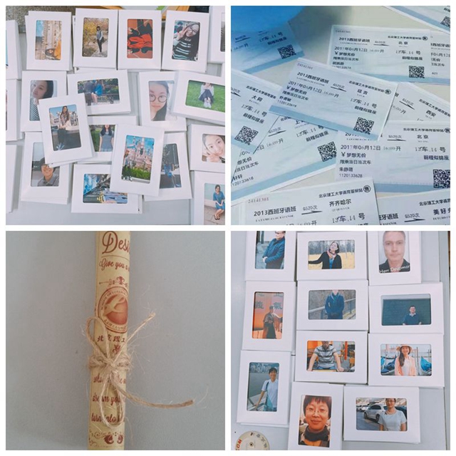 在答辯現(xiàn)場(chǎng), 24111301、24131301、24141301三個(gè)班級(jí)的德育答辯環(huán)節(jié)尤為特別。24111301班在答辯開始前準(zhǔn)備了便簽,讓每名學(xué)生匿名給三個(gè)人寫心里話跟一張?jiān)S愿紙,班主任劉露為每一名學(xué)生準(zhǔn)備了一份寫有寄語的小禮物。24131301班精心為每一位老師和學(xué)生制作了一套明信片,每一套里面都包含所有德語系教師和學(xué)生的照片,并且專門將各個(gè)老師和學(xué)生的照片放在了封面,作為德育答辯的紀(jì)念禮物。24141301班班委為每位學(xué)生制作了一張專屬車票,從2013級(jí)西班牙語班出發(fā),終點(diǎn)是每個(gè)人的家鄉(xiāng),票價(jià)為夢(mèng)想無價(jià),前程似錦座,同樣也為每位老師制作了一張,她們的終點(diǎn)是美好未來,票價(jià)為師恩無價(jià)。