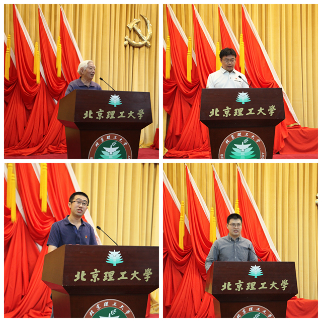 先進基層黨支部和優秀共產黨員交流分享了“兩學一做”學習教育的心得體會和入黨故事。制造工程系第一黨支部書記梁志強交流了黨支部引領黨員堅持立德樹人傳幫帶,發揮黨組織政治核心和戰斗堡壘作用,凝心聚力共促發展的事跡。離退休黨委退休三支部書記姚仲鵬分享了老一輩三院共產黨員滿腔熱情、為北理工教育事業默默奉獻的優秀品質和軍工情懷,介紹了支部老黨員們退休后仍時刻心系黨的教育事業發展、緊跟時代脈搏,不忘初心、堅持學習的優秀事跡。電動車第三學生黨支部的張嘉楠分享了他作為大學生電動方程式賽車隊隊長,帶領團隊在自主設計的新一代電動賽車“銀鯊”項目上連夜奮戰,研發出多項創新技術,終于奔馳在賽道上的事跡和經歷。能源與動力工程系第二黨支部書記左哲以“早到的信仰,遲來的儀式”為題,分享了他的入黨故事,講述了他帶著自幼養成的家國情懷和共產主義信仰在博士期間申請入黨,成熟而理性的思考使他更加堅定了要成為一名優秀共產黨員的理想信念。