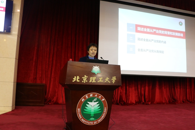 11日下午,學校正處級紀檢監察員趙滿為培訓班學員做了主題為《全面從嚴治黨》的專題講座。趙滿為同學們講述了全面從嚴治黨的背景和發展脈絡,回顧了從洋務運動到五四運動無數仁人志士為中華民族的偉大復興進行前仆后繼的斗爭,梳理了從“治黨”到“從嚴治黨”,再到“全面從嚴治黨”的發展脈絡,隨后她強調“全面從嚴治黨,核心是加強黨的領導,基礎在全面,關鍵在嚴,要害在治”“永遠在路上”的內涵,并分別從黨的基層建設、黨員、黨支部書記和個人的角度,對培訓班學員提出了嚴格加強黨內監督、堅持目標導向和堅定個人理想的要求。