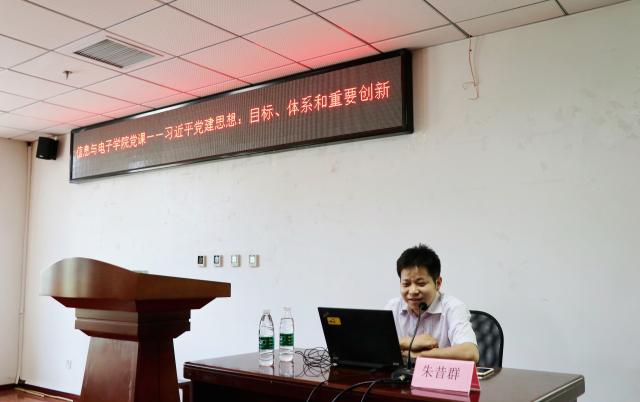 為深入學習貫徹習近平新時代中國特色社會主義思想和黨的十九大精神,在中國共產黨成立97年紀念日到來之際,信息與電子學院于6月21日下午邀請中央黨史和文獻研究院當代馬克思主義研究部黨建研究處處長、研究員朱昔群,講授《習近平黨建思想:目標、體系和重要創新》為題的專題黨課。本次黨課由學院黨委書記薛正輝主持,學院全體教工黨員和學生黨員代表參加。