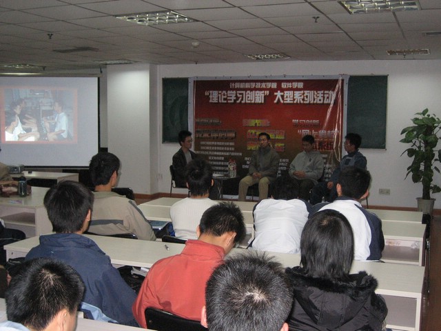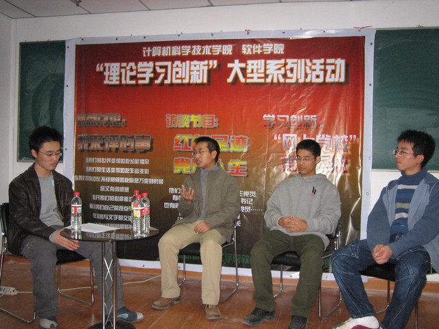 2005年11月24日計算機科學技術學院、軟件學院共產主義學習實踐會在理工科技大廈2108室舉行了“理論學習創新”大型系列活動之訪談節目----“紅色足跡 黨員人生”。本次活動的主旨在于豐富理論學習模式,轉換理論學習的角度,促進學員對理論學習的積極性、主動性。