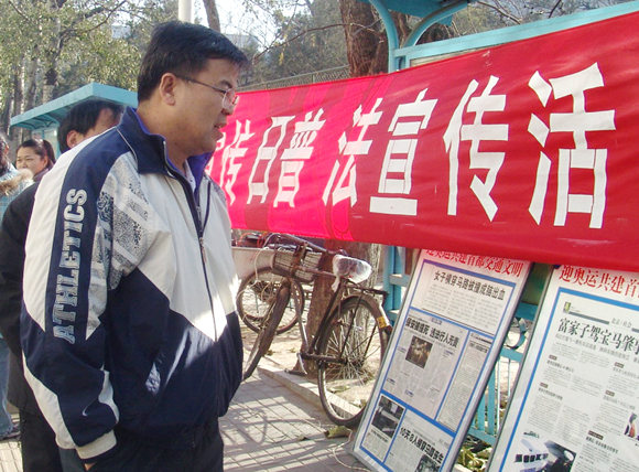 12月3日,黨委宣傳部、保衛部、保密部聯合人文社會科學學院共同舉辦了“12·4全國普法宣傳日”法律宣傳咨詢活動。 作為“全國普法先進單位”和“北京市普法先進單位”,我校領導對普法工作的重要性十分重視。黨委副書記、副校長楊賓(左一)到活動現場檢查和指導了法律宣傳咨詢活動。