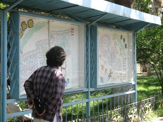為了深入貫徹學(xué)院分黨委“黨員零距離”系列活動的精神,5月20號上午,我院04級二支部黨員來到學(xué)校家屬區(qū),為理工家屬區(qū)的板報換新顏。以奧運為主題的板報板面活潑,鮮艷的色彩洋溢著青春的氣息,不禁引來過往行人的駐足。