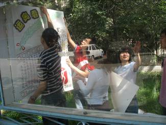 宇航學(xué)院“黨員零距離”活動中提出要勇于實踐,讓黨員在奉獻(xiàn)社會的過程中不斷成長和成熟,04級本科二支部的黨員們?yōu)榱藗鞑W運文化、宣傳奧運知識弘揚奧運精神,和理工大學(xué)居管處聯(lián)系組織為社區(qū)辦板報的活動。