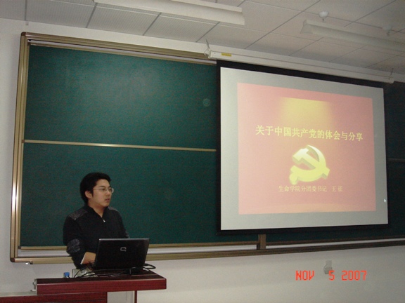 11月5日晚,生命學院分團委書記王征老師赴良鄉,給07級新生上了一堂精彩的黨課。